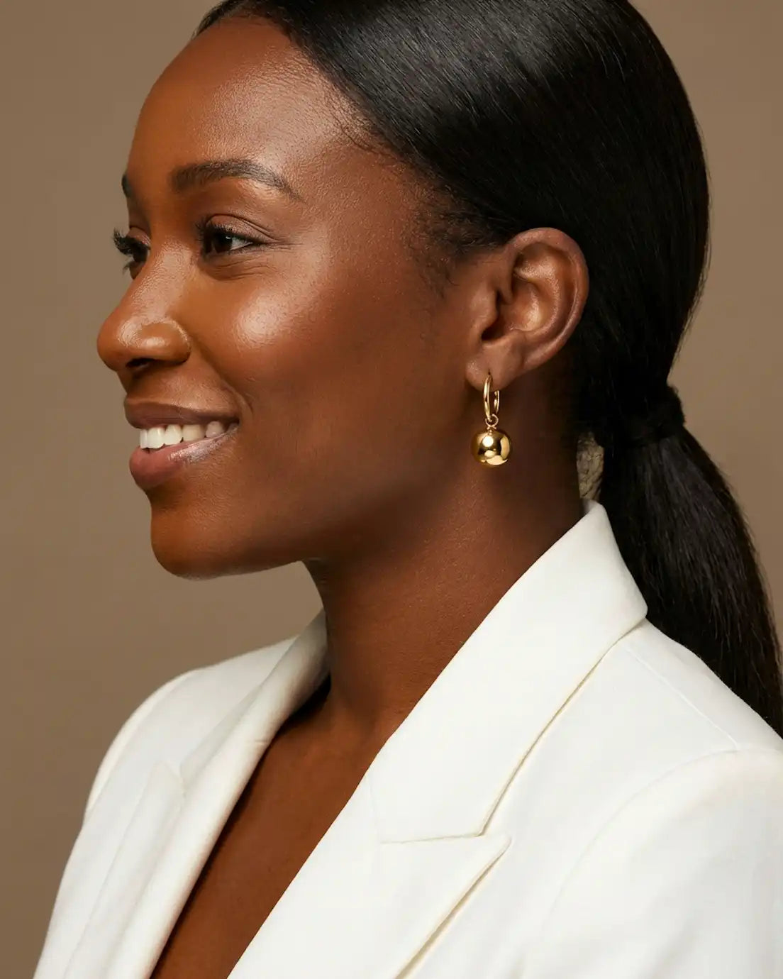 The perfect everyday hoop with a playful twist. These mini huggie hoops feature a smooth ball charm that adds just the right amount of movement and personality. The sleek silhouette keeps things refined and minimal, while the polished drop brings a modern, dynamic touch. They’re delicate enough for everyday wear yet interesting enough to feel special. The kind of earrings you put on in the morning and never want to take off.