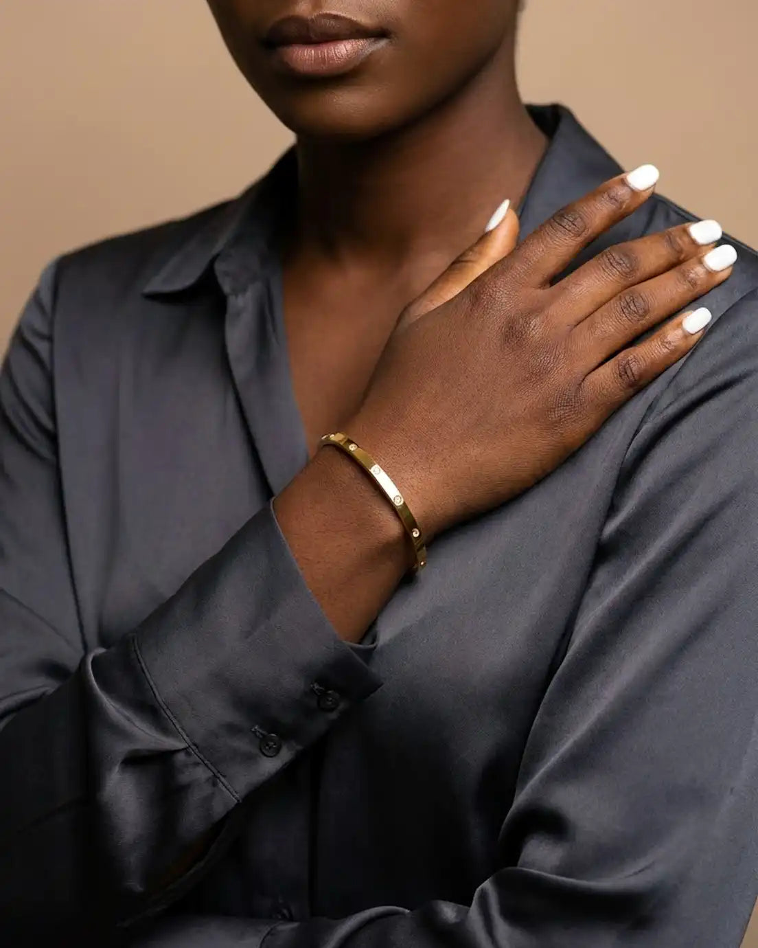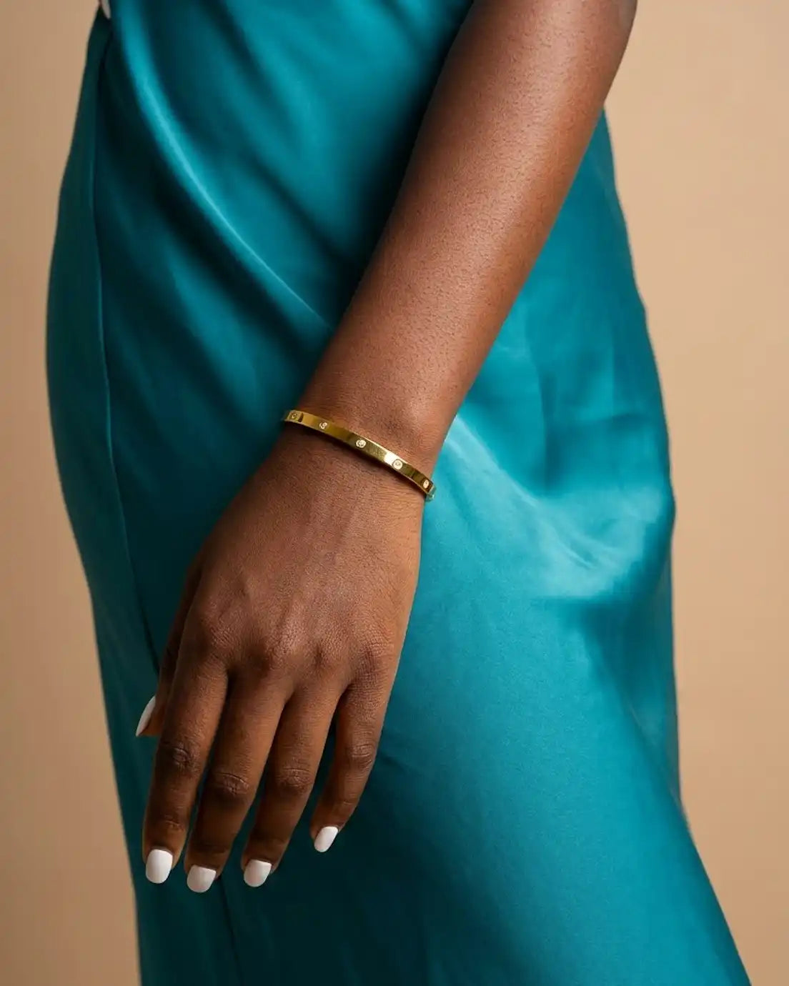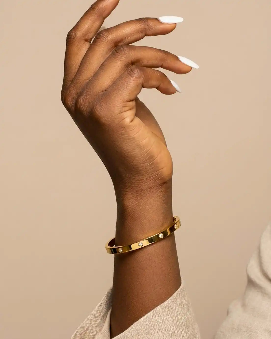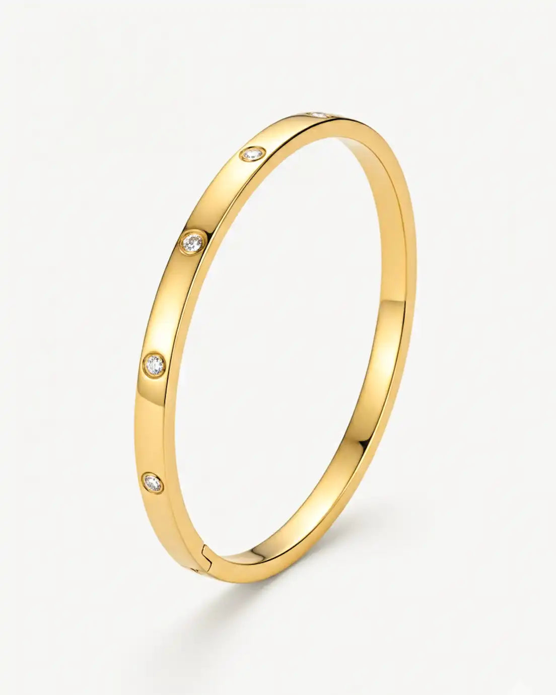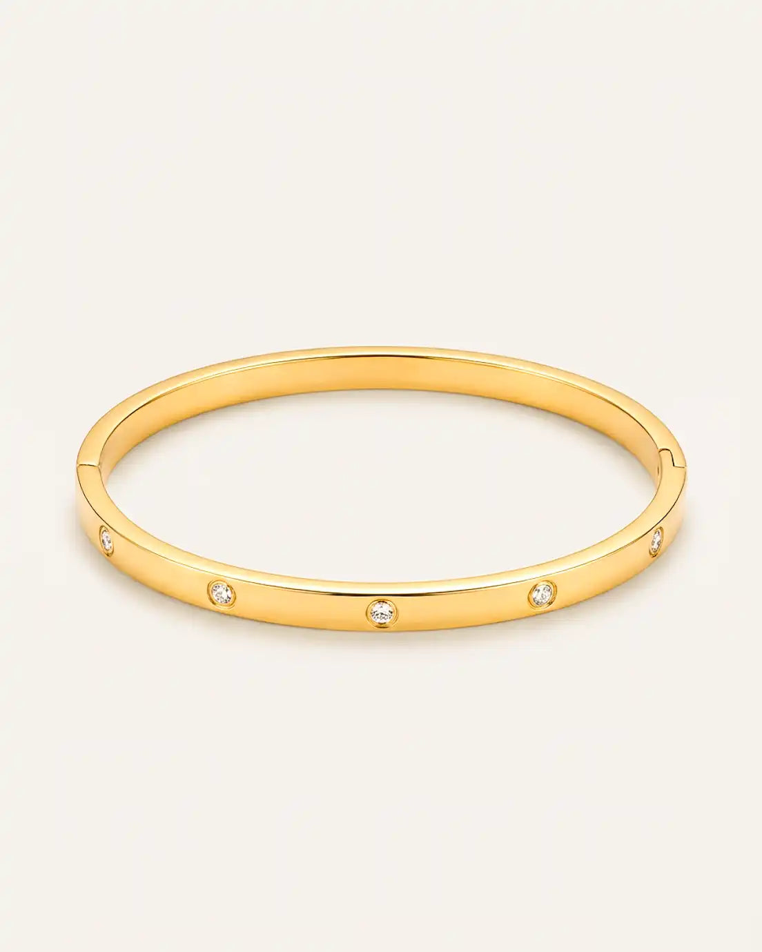 Proof that you don’t need a lot to make an impact. Delicate crystals are thoughtfully scattered around this sleek bangle—just enough sparkle to feel intentional without being busy. The clean, polished band keeps things modern and refined, while the bezel-set stones add unexpected moments of light. It’s the kind of piece that works with absolutely everything, from your most casual weekend look to your sharpest office ensemble. Wear it alone for quiet elegance or stack multiples for amplified shine.